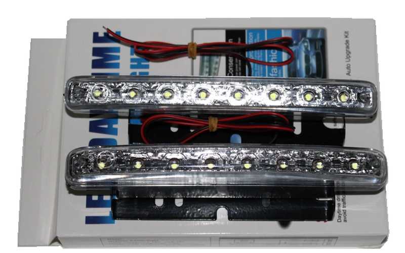 Ходовые огни DRL 8 LED. Представляют собой элементы в которых расположены по восемь ярких светодиодов. Обеспечивают безопасность движения автомобиля в дневное время суток, существенно улучшая его видимость, без необходимости включения ближнего света фар. Дневные ходовые огни предназначаются для установки только в передней части транспортного средства. Отличаются низким энергопотреблением и высоким рабочим ресурсом. В комплекте поставляется универсальный крепеж. Подходят для большинства марок и моделей автомобилей. Выполнены из качественных материалов.