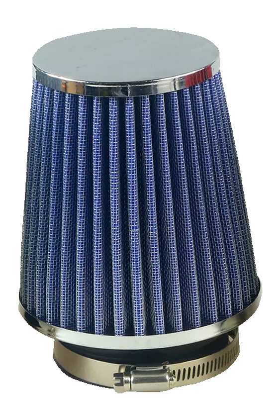 Фильтр воздушный нулевого сопротивления 16014-BU (синий) спортивный. Создает минимально возможное сопротивление, при этом сохраняет хорошую способность очищать воздух. Фильтр устанавливают на автомобили и мотоциклы вместо штатного поскольку он позволяет увеличить мощность мотора практически не влияя на расход топлива. Особенностью строения являются большие поры и минимальное количество бумаги в конструкции. В качестве основы применяется хлопковая ткань и алюминиевый экран.
