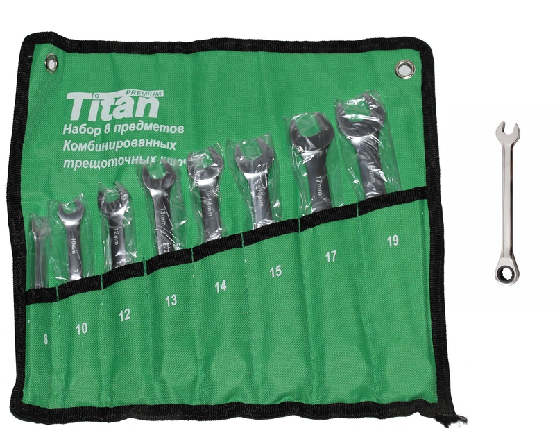 Набор комбинированных ключей с трещеткой 8 предметов.