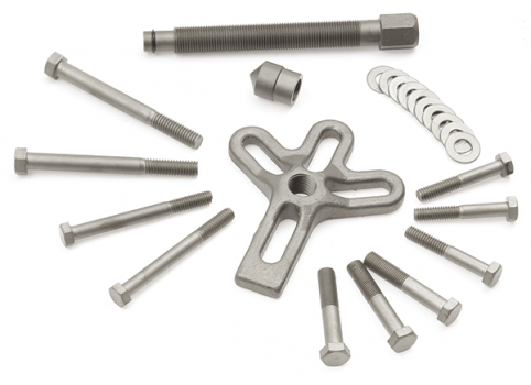 Набор предназначен для снятия шкивов, рулевых колёс, зубчатых колес и.т.д. Применяется в тех случаях, когда в демонтируемых деталях имеются резьбовые отверстия, или же отверстия, позволяющие пропустить через них болты-захваты для закрепления с другой стороны. В качестве захватов используются болты различной длины.