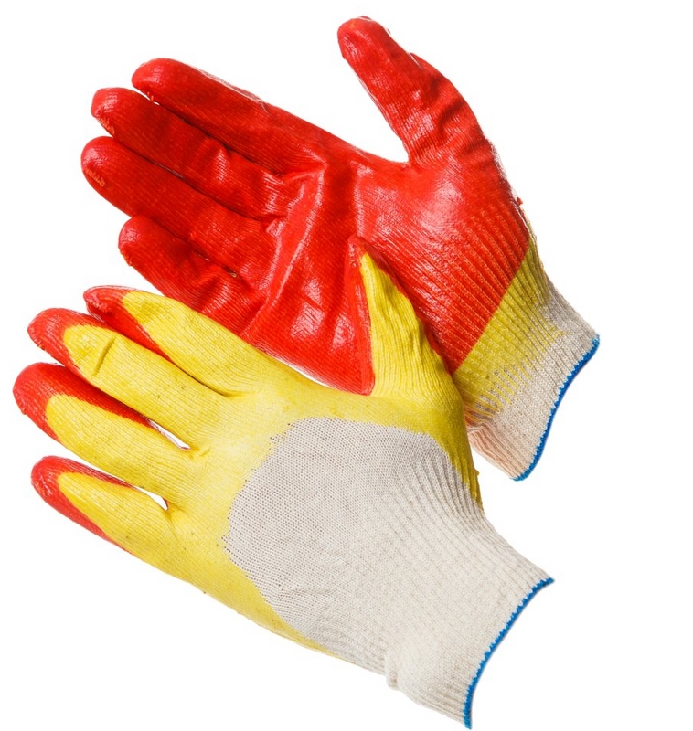 Перчатки рабочие текстильные с латексным обливом. Для защиты рук от механических повреждений. Изготовлены из трикотажного материала, хорошо пропускают воздух. Перчатки позволяют крепко удерживать инструмент во время работы за счет латексного покрытия на ладонях и кончиках пальцев. Имеют высокую прочность, удобны в эксплуатации.