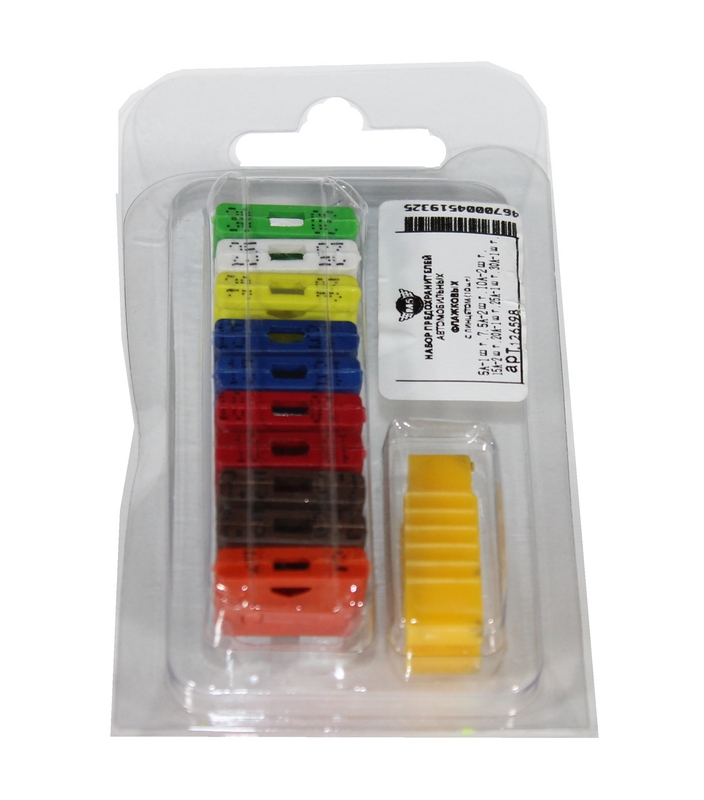 Набор предохранителей флажковых "стандарт" с пинцетом. Используются для защиты электрооборудования в автомобилях российского и иностранного производства. В комплекте предохранители различных номиналов от 5 до 30 А и пластиковый пинцет для их установки-извлечения. Плавкая вставка из высококачественного цинкового сплава.