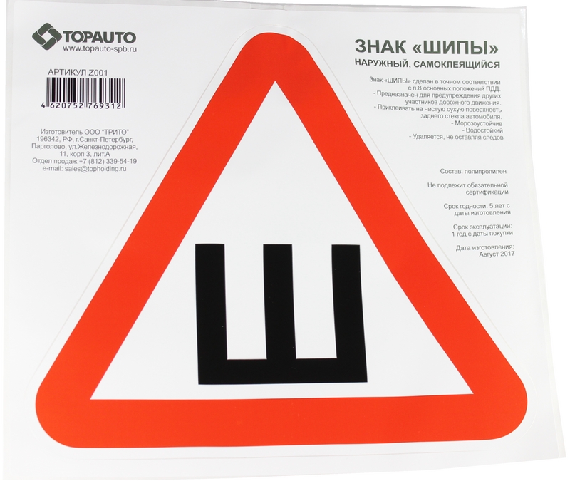 Знак "Шипы" наружный самоклеящийся для заднего стекла. Водостойкий, морозоустойчивый. Удаляется не оставляя следов клея на стекле. Клеится на сухое, чистое стекло для предупреждения других водителей. Размер 200х200, соответствует стандартам.